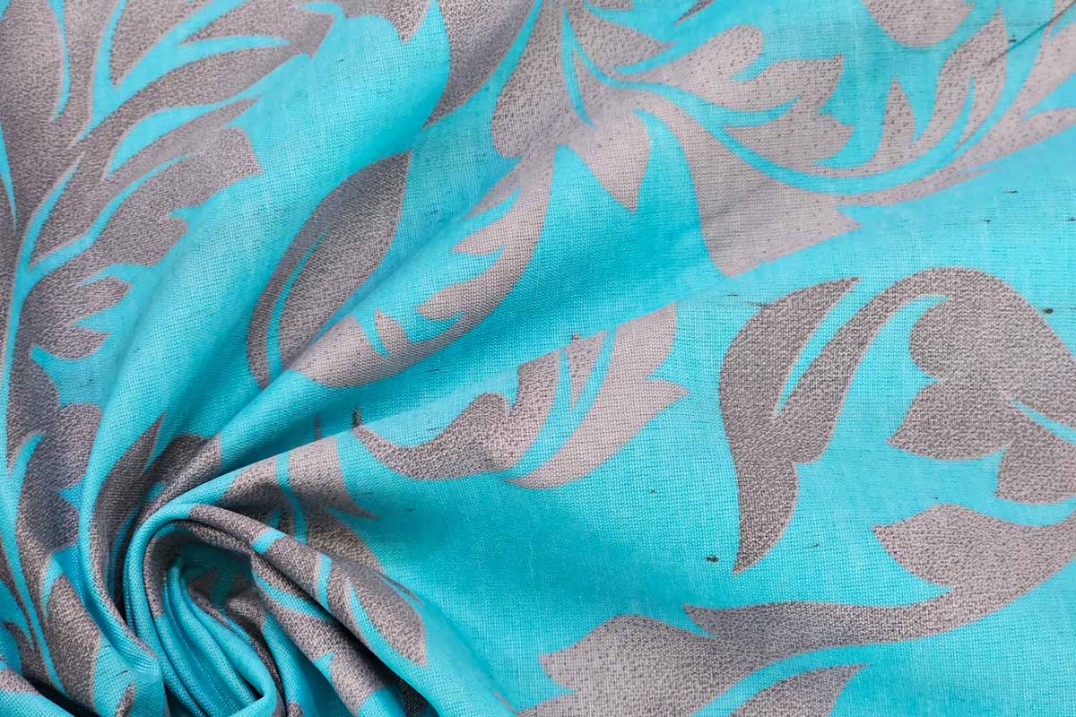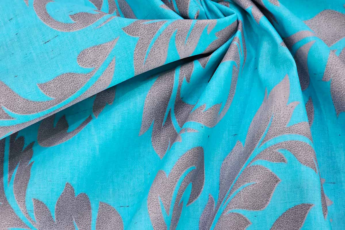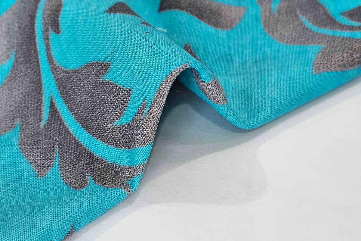 پارچه ملحفه ای آبی روشن طرح برگ خاکستری
